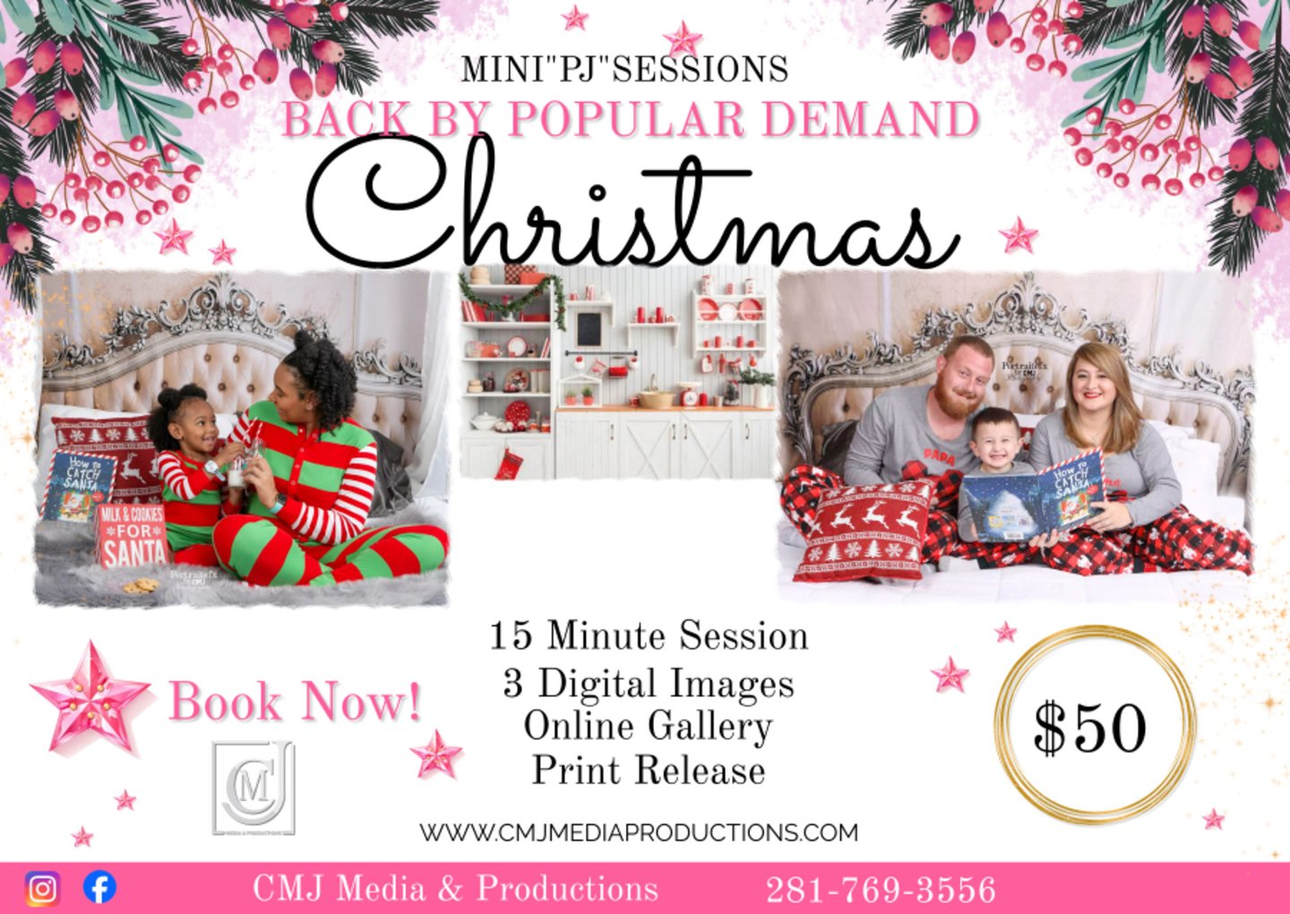 Call Cypress Venue and schedule your Family Christmas Photo Session located at Cypress Venue. Monday Thru Friday from 10am -2pm and 5pm-8pm. Must schedule your appointment.